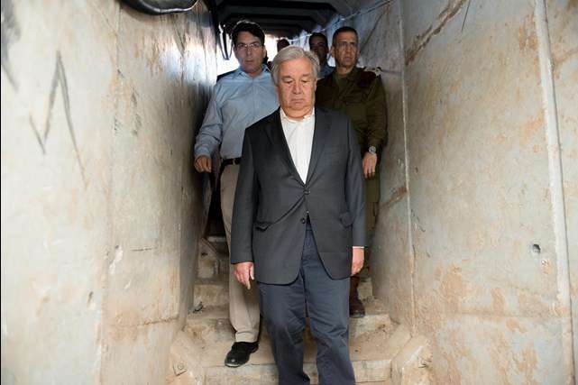 Funcionarios israelíes ofrecieron al secretario general de las Naciones Unidas, Antonio Guterres, un recorrido por la frontera con Gaza, mostrándole, tanto desde el aire como bajo tierra, las amenazas que enfrenta el Estado judío desde la Franja, controlada por el