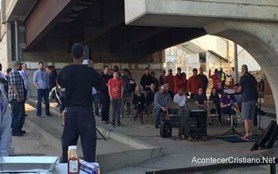 ESTADOS UNIDOS.- Una iglesia acudió apredicar el Evangelio a personasdesamparadas que viven en las calles,realizando el culto bajo un puente, donde varios indigentes asistieron. La iglesia se reúne todos los lunes de cada semana bajo el puente, para anunciar las