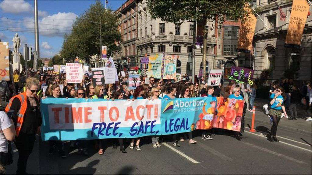 Image copyright RTÉ Image caption The country's abortion laws are some of the strictest in Europe Tens of thousands of people have marched through Dublin to demand change to the Republic of Ireland's abortion laws.The March for Choice is the