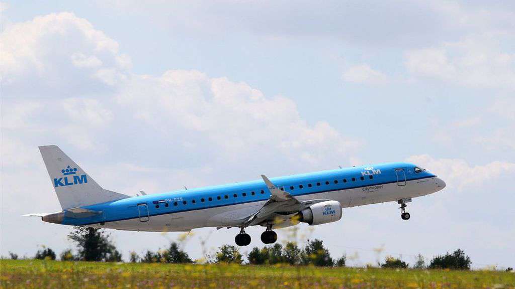 Image copyright AFP Image caption The panel broke off from the wing of a KLM airlines flight to Amsterdam A car was seriously damaged when part of an aeroplane's wing landed on it in the Japanese city of Osaka.The piece,