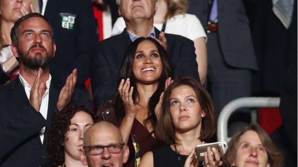 Image copyright Reuters Image caption Prince Harry's girlfriend was at the opening ceremony but not next to Harry Meghan Markle has attended the opening ceremony of Prince Harry's Invictus Games for injured service personnel.The prince's girlfriend was in the stands