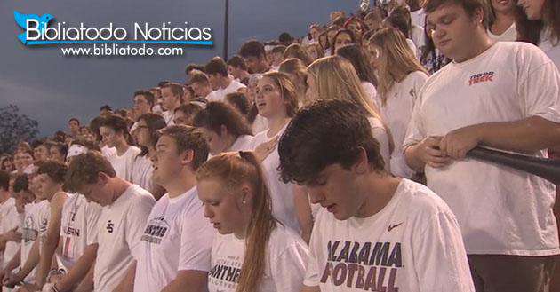Los jugadores y los aficionados unieron sus voces durante un partido de fútbol en Estados Unidos, después de que los ateos se quejaron de un estudiante que oró en un partido.Los jugadores y los aficionados se unieron sus voces a