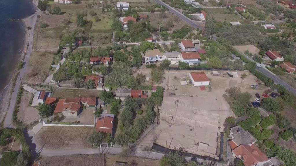 Image copyright Swiss Radio and Television Image caption The dig (right) is gradually uncovering the temple near Amarynthos A group of archaeologists have ended a search lasting more than 100 years for a missing Greek temple, after working out that