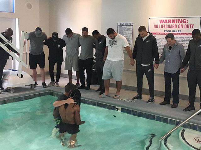 Jugador de la NFL fue bautizado en la piscina de un hotel