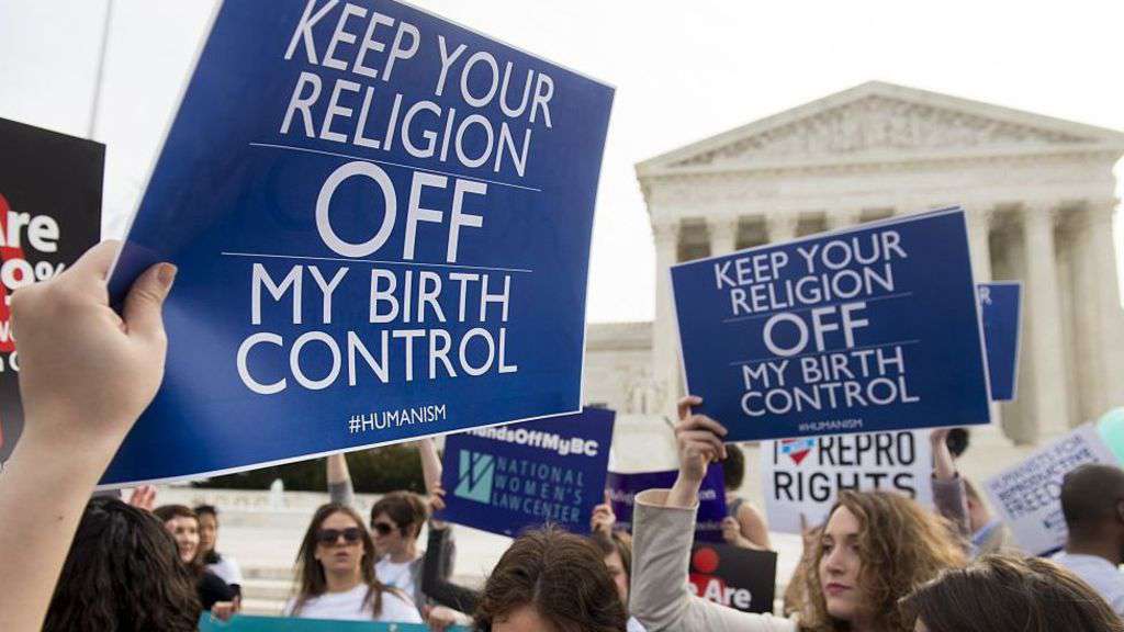 Image copyright Getty Images Image caption Protesters outside the Supreme Court in March when lawsuits were filed against the Obama-era rule Donald Trump's government has issued a ruling that allows employers to opt out of providing free birth control to
