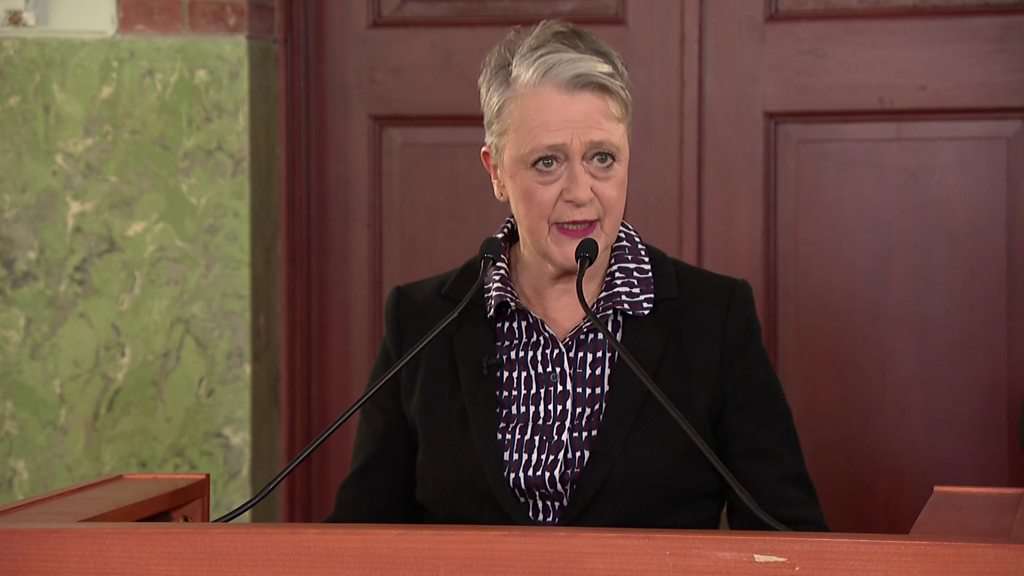 Media playback is unsupported on your device Media captionBerit Reiss-Andersen, the Nobel committee chair, announces the winner. The Nobel Peace Prize has been awarded to the International Campaign to Abolish Nuclear Weapons (Ican).Berit Reiss-Andersen, the Nobel committee chair, said it
