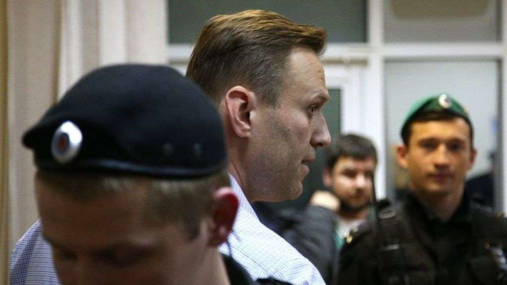 Image copyright EPA Image caption Alexei Navalny (above in court on Monday) argues that cases against him are politically motivated Russian opposition leader Alexei Navalny has been given a 20-day prison sentence for repeatedly violating a ban on organising public