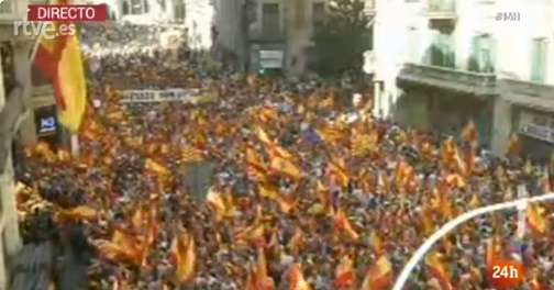 Miles de personas se manifestaron en Barcelona en defensa de la unidad de España, a dos días del pleno del Parlamento catalán en el que se podría declarar una declaración de independencia. Convocados por la organización Sociedad Civil Catalana bajo el lema