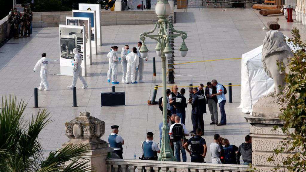 Image copyright Reuters Image caption The attack took place outside the train station in the southern French port city A suspected jihadist who stabbed two young women to death at Marseille's main train station had used several aliases and was