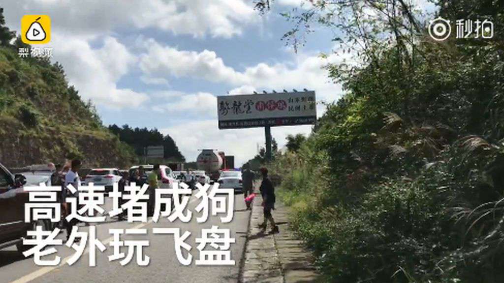 Image copyright Pear Video Image caption Pear Video says that some frustrated travellers in southern China got out of their cars to play frisbee China's "Golden Week" national holiday is under way, and social media users are making light of
