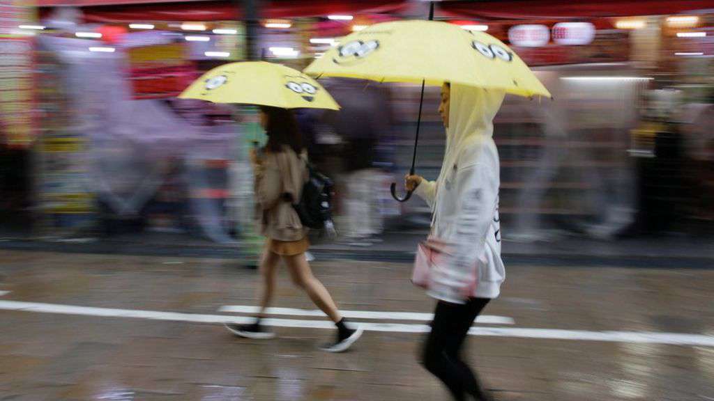 Image copyright Reuters Image caption Heavy rain has drenched Japan over the weekend Two people have died and more than 10 injured after a typhoon struck Japan.Typhoon Lan made landfall at Shizuoka, 175km (110 miles) south-west of Tokyo, at about