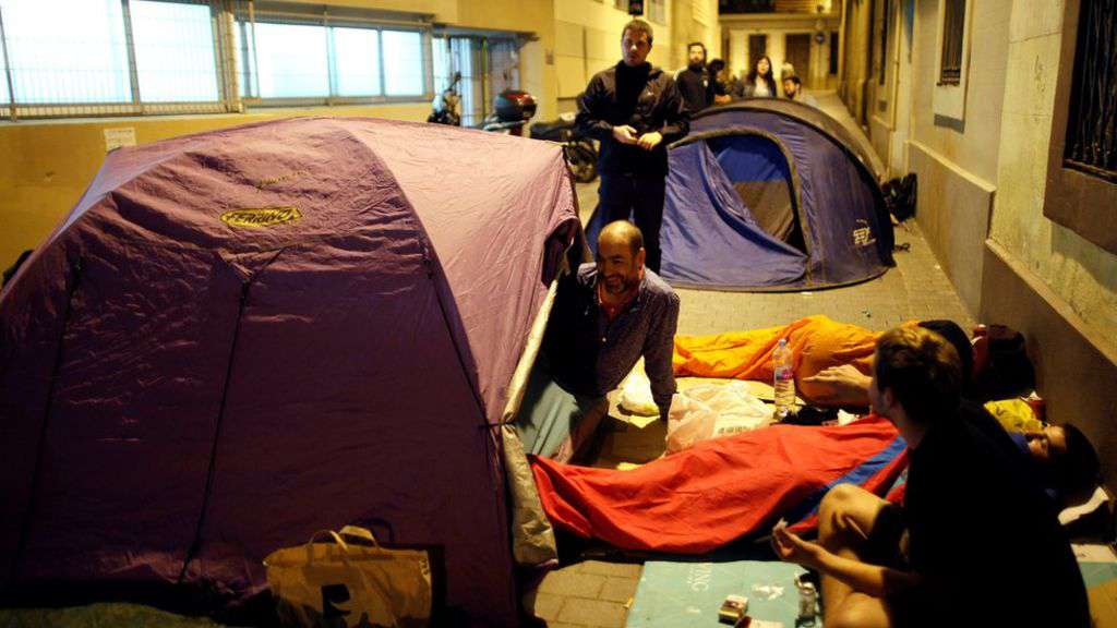 Image copyright Reuters Image caption Activists occupied schools overnight so they could be used as polling station Catalan leaders insist that voting will go ahead in the coming hours for an independence referendum banned by the Spanish government.Regional officials said