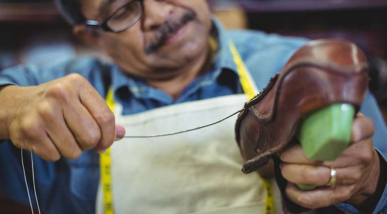 Harry’s job in the cobbler’s shop was to pound leather for shoe soles. He would cut a piece of leather to fit, soak it in water, and strike it with a hammer until it was dry. Harry asked his boss