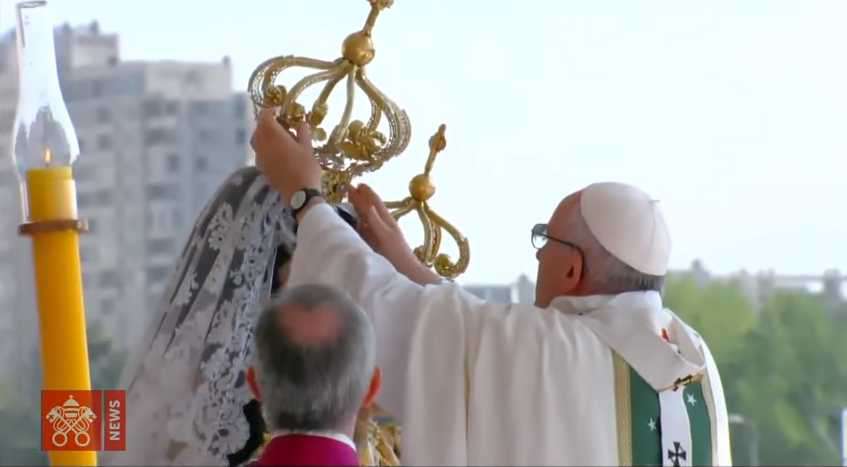 ‘Pope Francis’ Places Crown on Head of Statue of Mary During Visit to Chile
