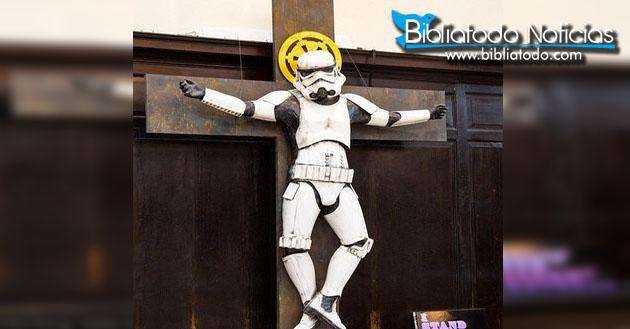 «ABERRANTE» La Iglesia exhibe Stormtrooper crucificado en templo