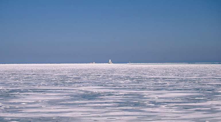 Durante un invierno especialmente frío, me aventuré a ir al Lago Michigan para verlo congelado. Envuelta con ropa abrigada, en la playa donde habitualmente tomaba sol, la vista era espectacular. El agua estaba en verdad congelada y con olas que
