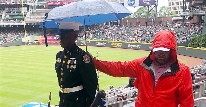 Moving Photo Shows Atlanta Braves Fan Shielding JROTC Member from Rain
