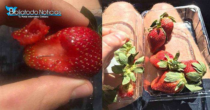 ¡POLÉMICA! Crece hallazgo de agujas dentro de fresas en AustraliaEn Australia, se investiga el misterio de las agujas escondidas en las fresas, ya que han causado un herido y ha generado mucha alarma en los habitantes de ese país.En las