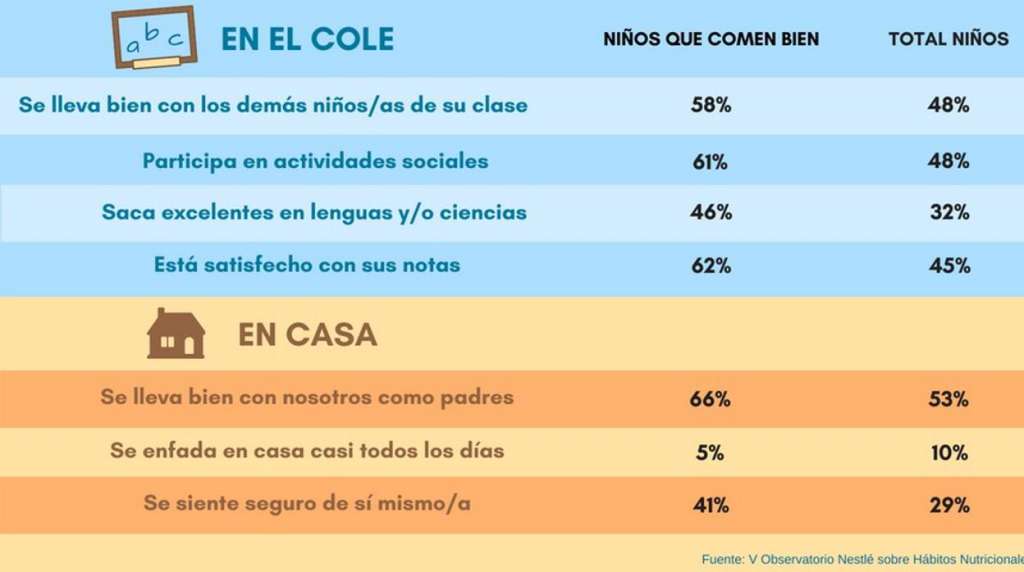 Los últimos datos del V Observatorio Nestlé sobre Hábitos Nutricionales y Estilos de Vida de las Familias que, en esta edición se ha centrado en la alimentación y su relación con el rendimiento escolar, revelan que los niños que siguen