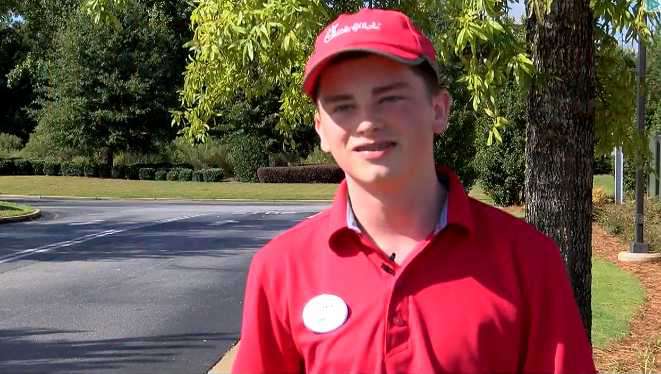COLUMBUS, Ga. -- An employee at a Georgia Chick-fil-A is giving the glory back to God after he recently gave a homeless man his shoes. Levi Jones, 18, who works at the Columbus location, told local television station WBRL that