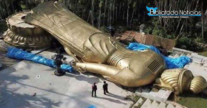 En Okinawa: Cae estrepitosamente la estatua budista Kannon Sama