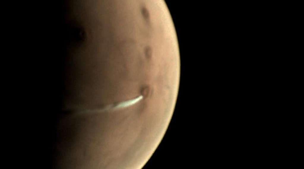 Una misteriosa columna de color blanco de unos 1.500 kilómetros de largo, detectada en septiembre cerca del volcán Arsia Mons de Marte, ha llamado la atención de la comunidad científica. La razón: al contrario que otras columnas visibles del mismo