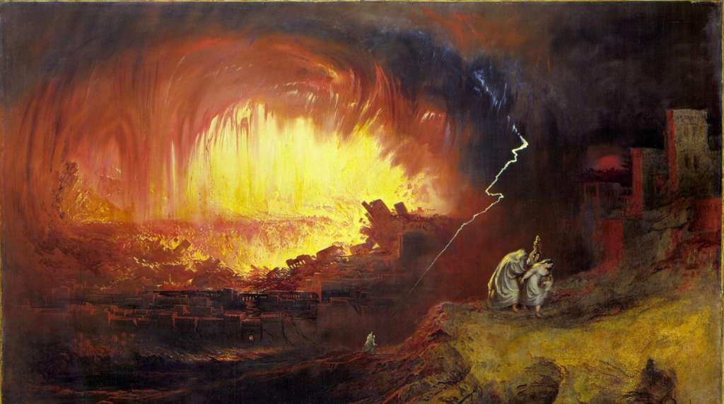 Cuenta el libro del Génesis que Yahvé hizo caer una tempestad de fuego y azufre sobre Sodoma y Gomorra como castigo por las perversiones de sus habitantes. Tras la ira divina, estas dos ciudades a orillas del Mar Muerto quedaron