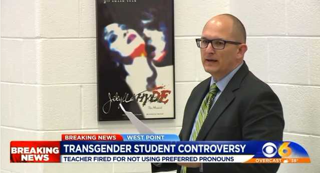Photo Credit: Screenshot WTKR WEST POINT, Va. -- A high school teacher in Virginia was fired on Thursday for declining to use masculine pronouns for a female student who identifies as a boy. Peter Vlaming, who teaches French at West