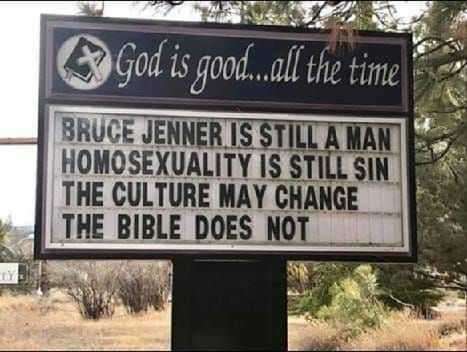 Photo Credit: Facebook WEED, Calif. -- The pastor in California who posted a sign that reads “Bruce Jenner is still a man. Homosexuality is still sin. The culture may change, the Bible does not" is now out of a job