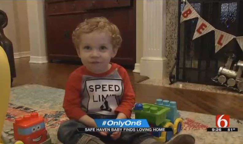 Photo Credit: News on 6/Screenshot TULSA, Okla. -- Surrendered at an urgent care clinic by his homeless mother, an Oklahoma toddler once referred to as "Baby Boy Unknown" is now thriving with his forever family, which credits the Lord for