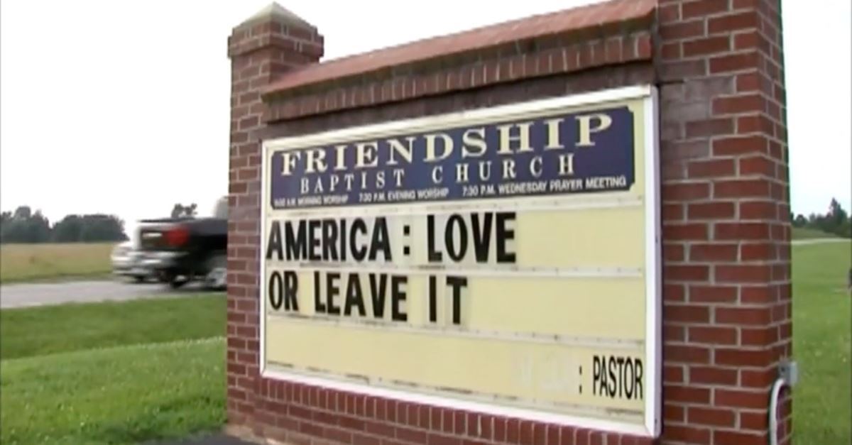 Congregants Walkout of Church over Pastor’s Controversial ‘Love it or Leave it’ Sign