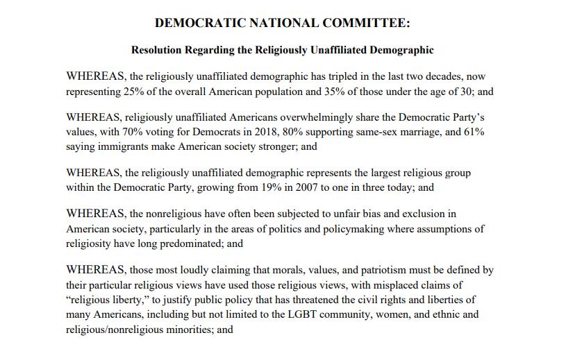 Democratic Party Passes Resolution Embracing ‘Religiously Unaffiliated,’ Criticizing Christian Religious Liberty