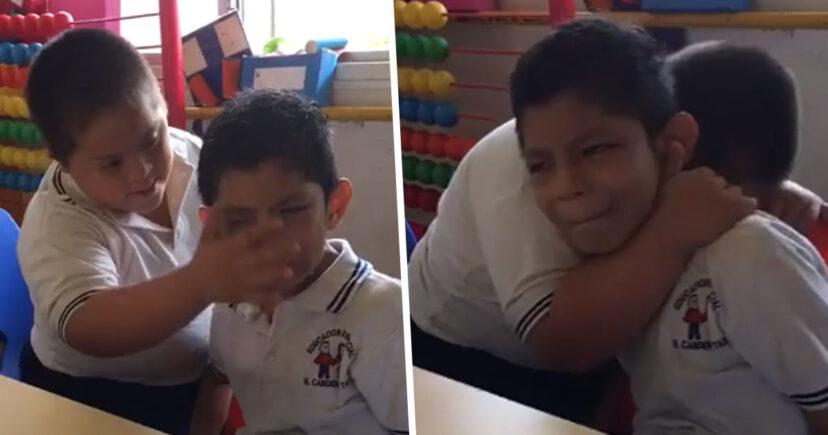 (UNILAD) — Footage of a little boy with Down syndrome comforting his autistic classmate has gone viral for all the right reasons, warming the hearts of millions in the process. Filmed by a teacher at a school in Mexico, the caring