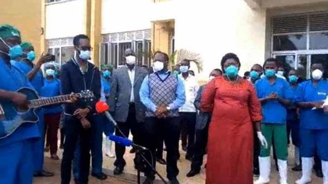Vestidos con uniformes y máscaras, un equipo de médicos en Uganda elogió a Dios por los pacientes curados de coronavirus (Covid-19). El acto tuvo lugar el lunes (19), luego de que nueve pacientes fueron dados de alta.Ellos cantaron varias canciones