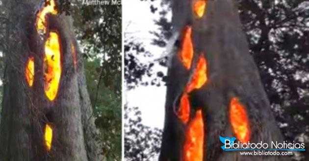 ASOMBROSO! Hombre graba árbol que arde en llamas solo por dentro