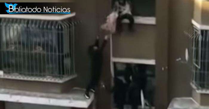 ¡Asombroso! Hombre rescata a bebé que colgaba de un balcón