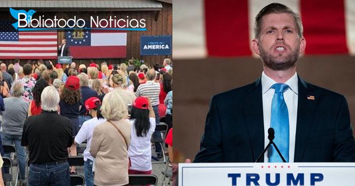 El martes, Eric Trump, el segundo hijo del presidente Donald Trump, hizo la campaña electoral de su padre en Georgia. Eric Trump Allí, Eric Trump, basó su discurso en la fe, afirmando que Dios fue quien les permitió reunirse en ese lugar. Se estima que alrededor