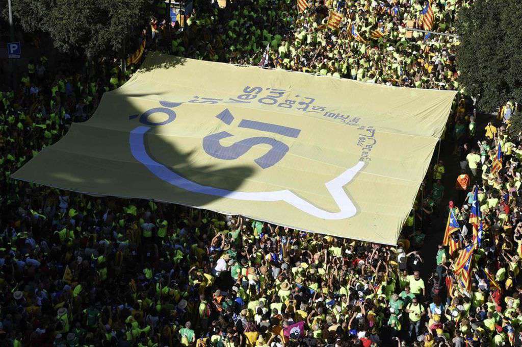 Image copyright AFP Image caption The crowd held aloft a giant pro-independence "Yes" banner Thousands of Catalans are thronging the streets of Barcelona to mark their national day - the "Diada" - and show support for an independence referendum.Catalonia's pro-independence
