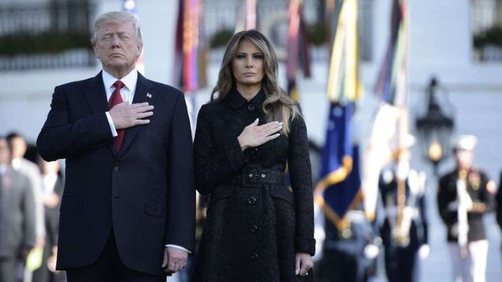 Image copyright Getty Images President Donald Trump has presided over his first 9/11 commemoration in office, marking the 16th anniversary of the attacks.He and first lady Melania observed a solemn moment of silence at the White House and later at