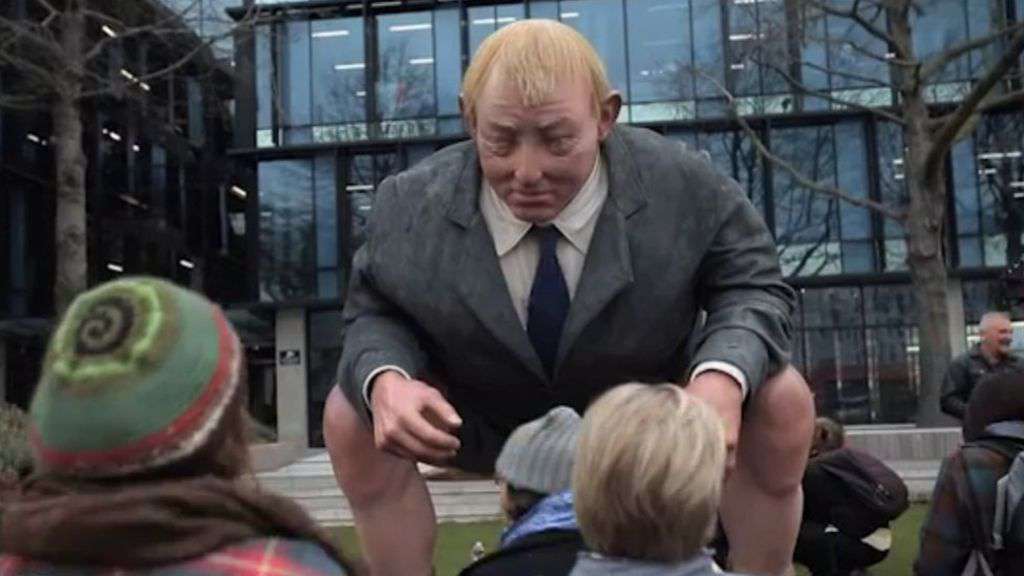 Image copyright Stuff.nz Image caption The statue of Dr Smith was left on a public footpath, baring its buttocks at the council offices A larger-than-life statue of New Zealand's environment minister, fashioned from horse dung, has been left outside council