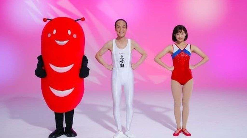 Image copyright Soo City Image caption Hideo Higashikokubaru (centre) starred in the cult TV show Takeshi's Castle An actor-turned-politician is promoting tax payments in a Japanese region through the medium of a bizarre video starring an "alien sausage" mascot.Former comedian