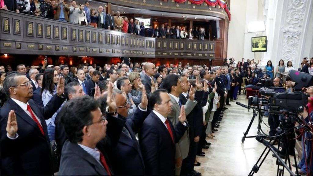 Image copyright Reuters Image caption Eighteen newly elected governors out of 23 were sworn in In Venezuela, 18 newly elected socialist governors have been sworn in by the constituent assembly.Five governors from the opposition Roundtable for Democracy (MUD) coalition boycotted