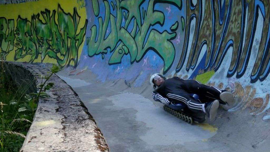 Image caption Mirza Nikolaev, 16, joined Bosnia's junior luge team after seeing an item about it on the TV news A summer luge may look like a plastic tray on wheels. But at full speed it hurtles around the concrete