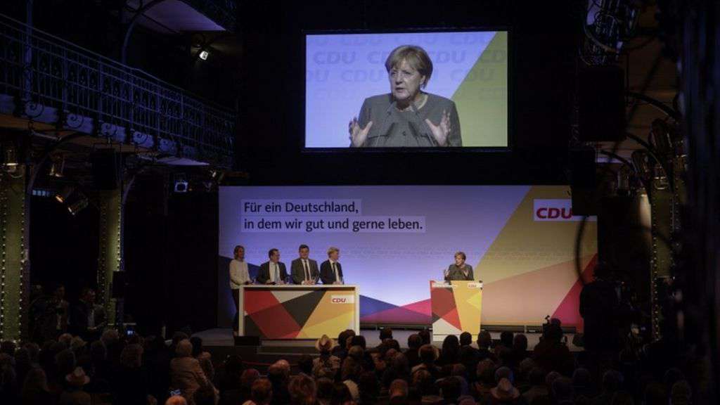 Image copyright EPA Image caption Merkel looks set to win a fourth term as Chancellor - but in a wholly different German political landscape Rock music blaring, supporters cheering, Angela Merkel sweeps on to the makeshift stage. Under spotlights hastily