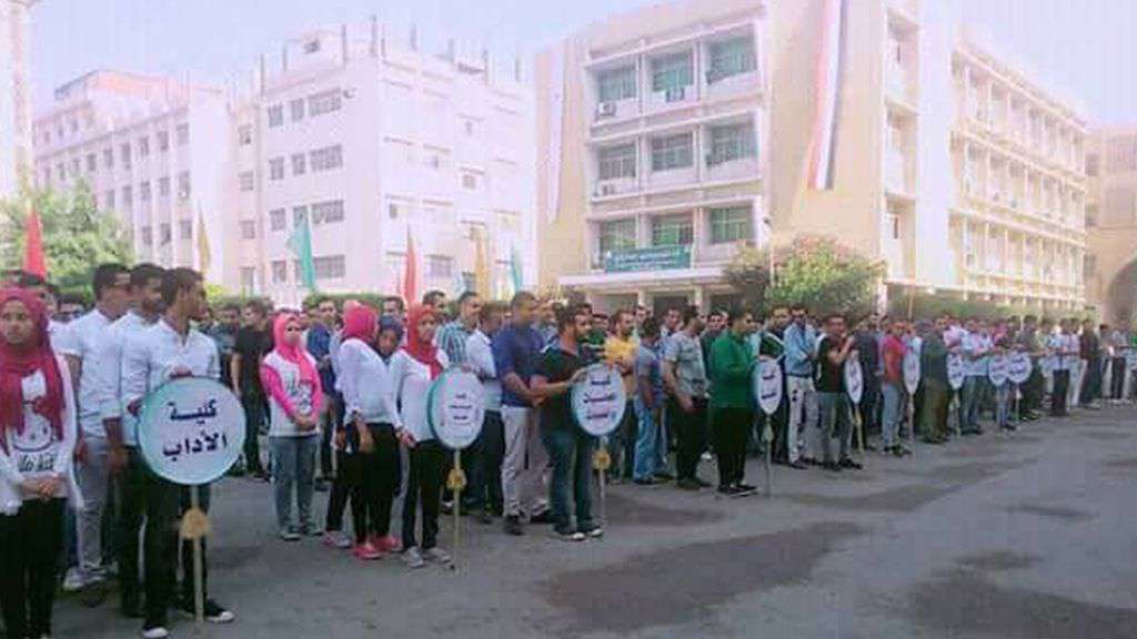 Image copyright Egyptian Independent Image caption Students line up by faculty to salute the flag The Egyptian government has decreed that the country's 2.5m college students should salute the flag at the start of the academic year, in a move