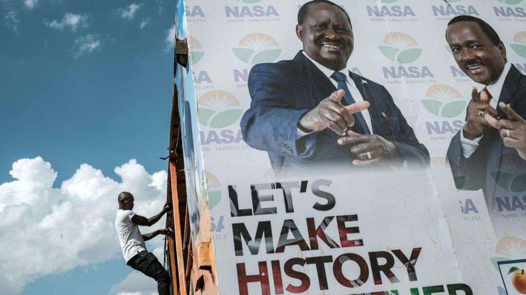 Image copyright AFP Image caption Opposition leader Raila Odinga (left on poster) successfully challenged August's result in court The company providing the voting system for the re-run of Kenya's presidential election says the equipment will not be ready in time,