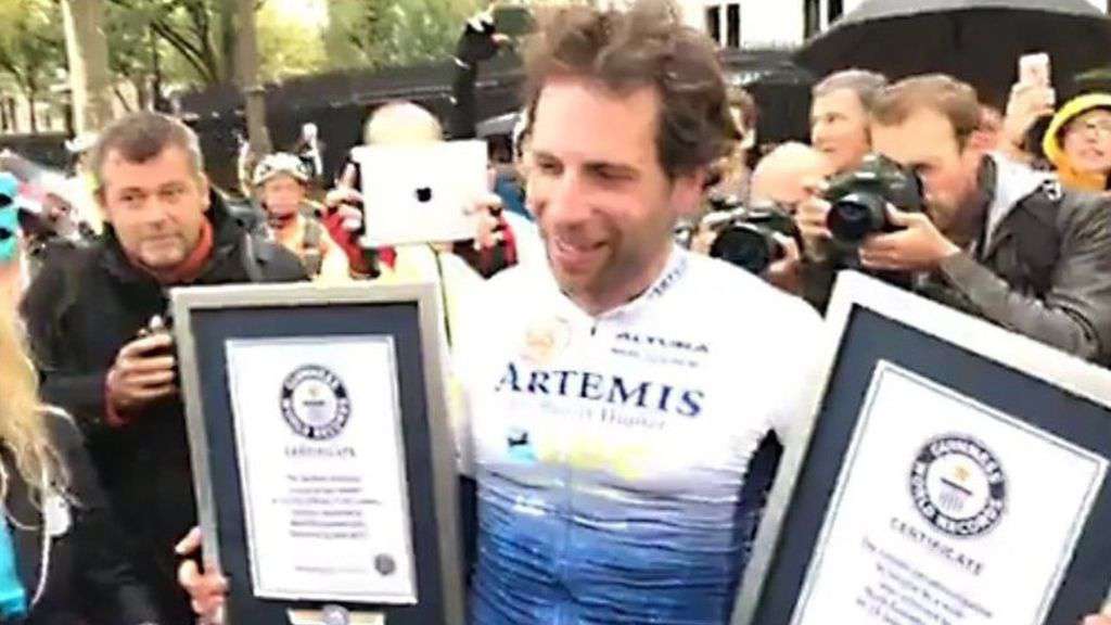 Image copyright Mark Beaumont Mark Beaumont has broken the world record for cycling around the world - by 44 days.The 34-year-old, from Perthshire, arrived in Paris one day ahead of schedule having cycled the 18,000-mile route in 79 days.He set