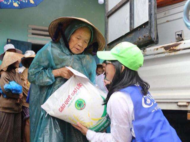 La coordinadora de ayuda para desastres de CBN Vietnam, Chau Lieu, dice que miembros del equipo fueron en botes para entregar comida y agua. Explica que los aldeanos estaban muy agradecidos porque era la primera vez que recibían ayuda.