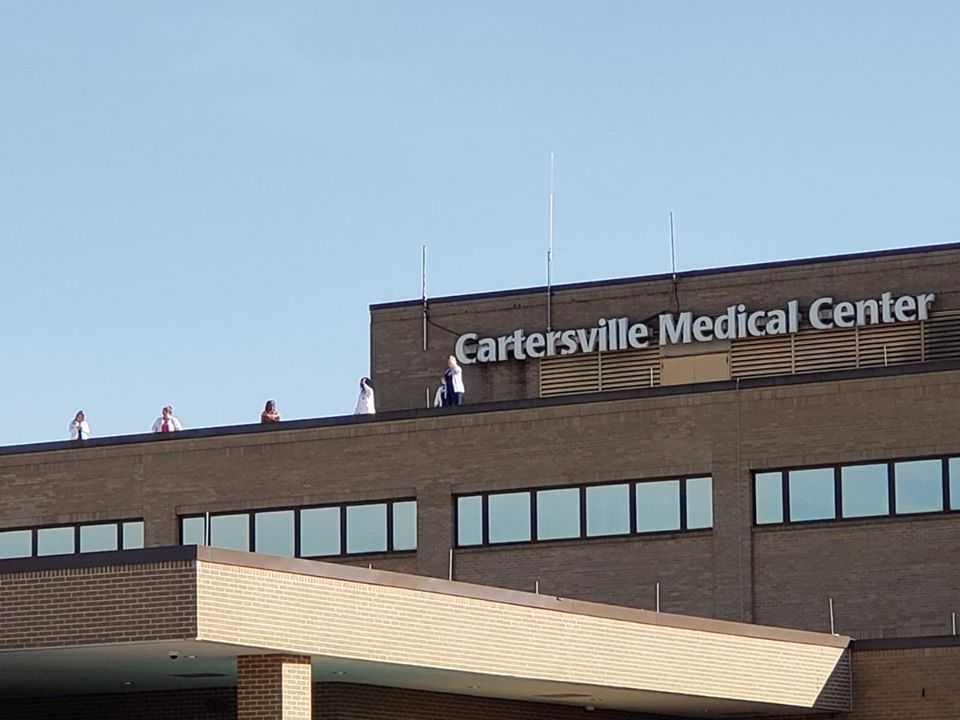 According to reports, hundreds descended upon Cartersville Medical Center on March 26, honking their horns and some holding or erecting signs such as “thank you; praying for you,” “praying hands” and “stay strong.”
