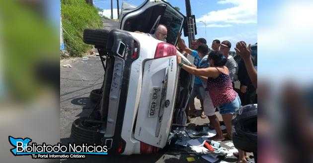 Coche que conducía un pastor colapso, pero Dios los protegió